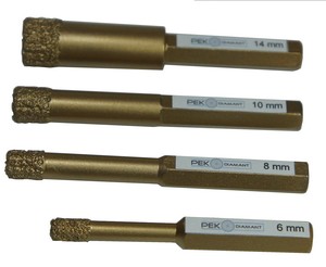Fliesenbohrer VAKUUM für sehr hartes Steinzeug 6, 8, 10, und 14 mm inkl. Bohrschablone im Koffer